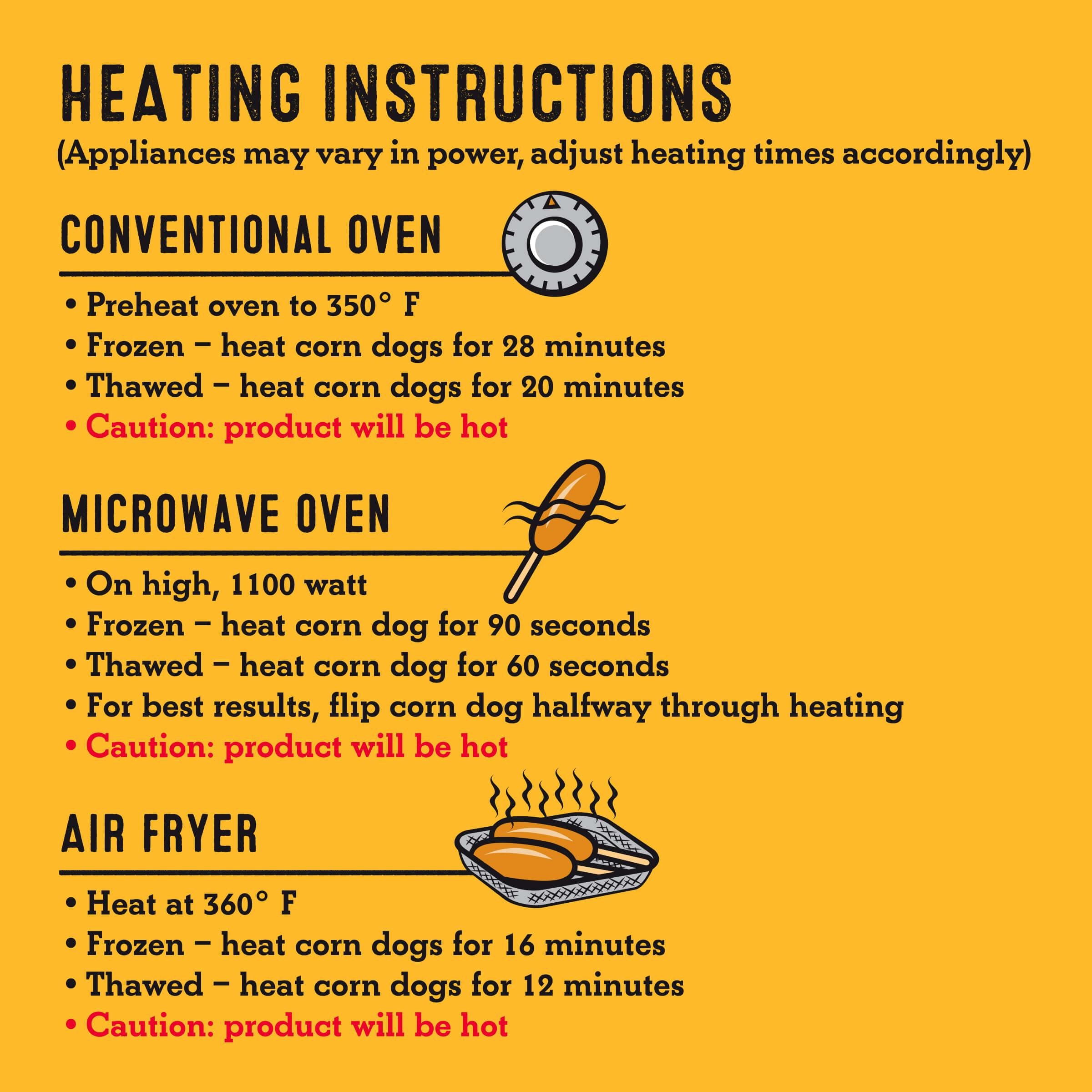 Our Honey Crunchy Corn Dogs can be prepared in a conventional oven, air fryer, or microwave.